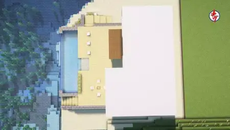 Survival Beach House Map — bright water out front, clean architecture behind you, and everything arranged like someone planned your first week. The interior isn’t a showpiece you can’t touch; it’s practical: living spaces set up for quick access, bedrooms ready when night falls, storage where your hands naturally land, and the basics you expect for a playable start. Step outside and the courtyard flows into the beach—paved paths, a tidy yard, and a pool terrace that frames the sea so the whole place feels calm before you even open a chest.