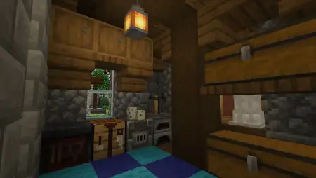 I play this place on a simple rhythm. Morning is chores: sweep the garden rows, toss seeds back in, top off the animals, and check the well before heading out. Midday is a loop beyond the walls—hug the treeline, mark a cave entrance, snag a few ores, and be back before the sky turns orange. Night belongs to the base. You cook, sort, and upgrade in a house that’s fully furnished, so the walk between storage, table, and furnace is a few steps instead of a lap around the room. Because there’s a stable, that first tamed horse isn’t an afterthought; it lives here, ready for scouting runs to nearby biomes.