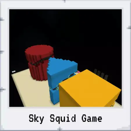 Bonus modes slot right in. Keys & Knives/Hide & Seek hands out a random sword or shovel—Netherite breaks red doors, Diamond breaks blue, Iron breaks white—so the chase writes itself. Jump Rope hides a lever under the start platform—double-toggle to run it, break/replace the redstone to stop and reset. Sky Squid Game gives you wall-mounted command blocks to warp players to the big square and spawn/delete bridge 1 (to Triangle) and bridge 2 (to Circle) on demand.