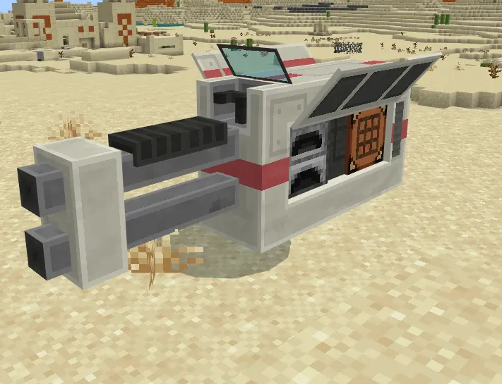The best part is how it slots into everyday Minecraft Bedrock play. Build a landing pad on your roof, park the ship with the doors sealed, and your base instantly feels like a hangar. Run patrol laps over a village during a raid, strafe targets to keep heat off the bell, then touch down to rearm and show off the ship to your crew. Because you can open and close the doors, screenshots hit different—boarding ramps down, sky behind you, and that “mission ready” energy every time you step inside.