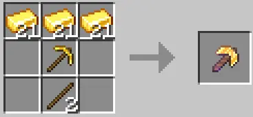 The loop lands because the pickaxes scale exactly how you want. You craft each OP pick from its vanilla counterpart plus a few extras, then step up tier by tier. Wood is the “taste test” with no enchants, but it still does the 3×3 thing. Stone kicks in Fortune I and Efficiency I, iron bumps Efficiency to II, gold adds Fortune II, diamond brings Fortune III with Efficiency III, and the netherite finale hits Fortune III with Efficiency V baked in. No enchant table grind, no gamble, and the enchants can’t fall off—what you craft is what you keep. I used iron to carve early slime chunks, diamond to tear through deepslate for ore veins, and netherite to blast clean nether highways while still scooping ancient debris along the way.