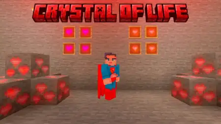 CRYSTAL OF LIFE — a simple but addictive power climb for Minecraft Bedrock. You dive into the depths hunting a new ore, Life Shard, combine nine shards into a Life Crystal, eat it, and boom: two permanent extra hearts. No gimmicks, no weird side systems—just a clean loop that makes every caving trip feel like a real upgrade path instead of a gear treadmill.