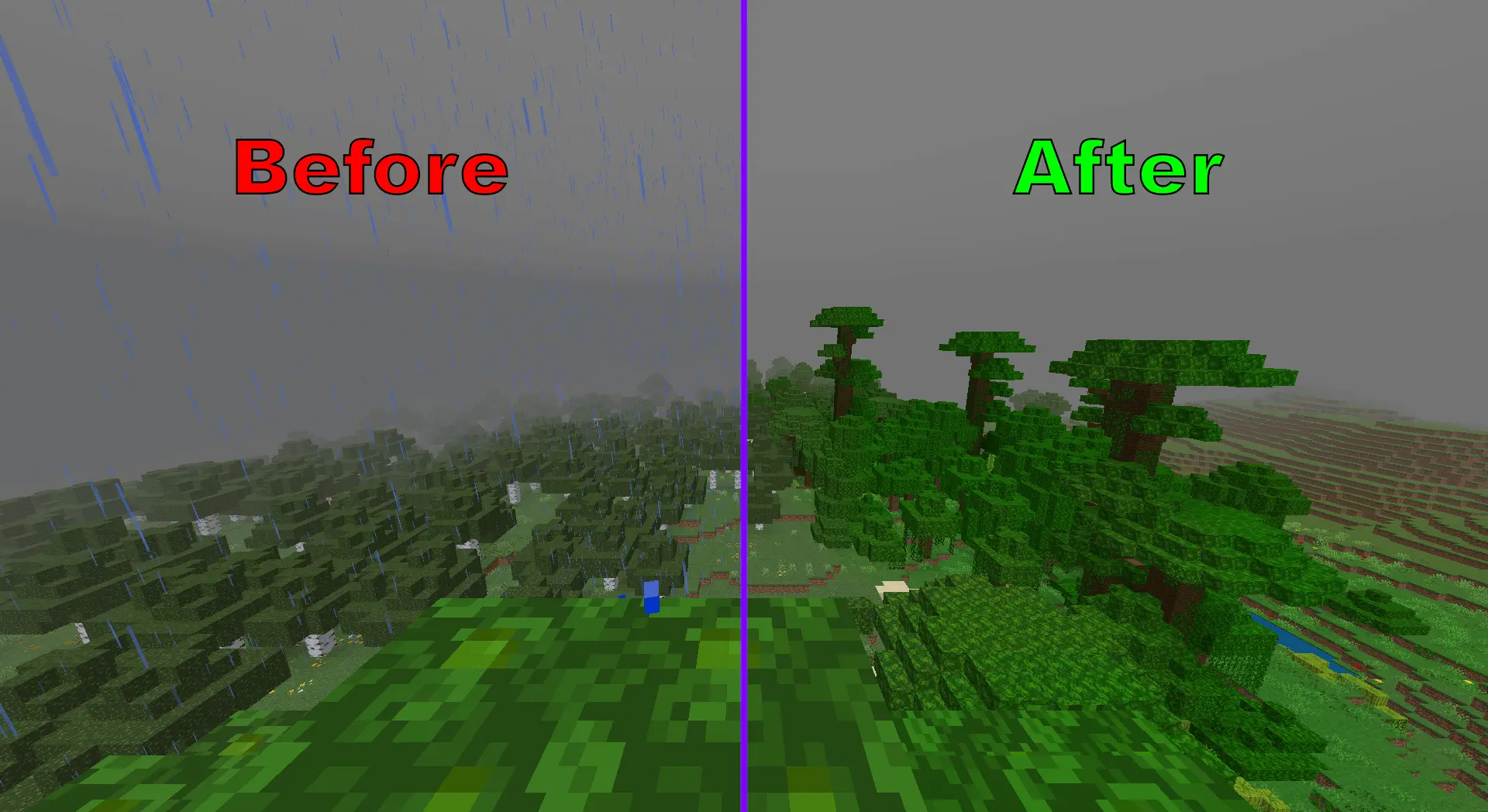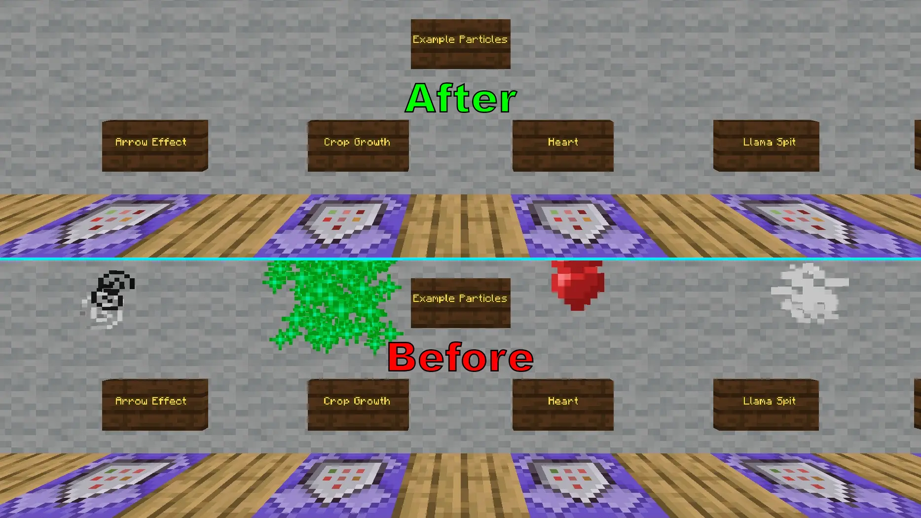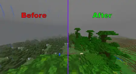 FPS boost & cleaner UI — strips the noise out of Minecraft Bedrock so your device can push steadier frames and your screen stays readable. The pack goes straight at the usual lag culprits: particles are flattened to 1×1 where they still matter, most others are disabled outright (dragon lingering and the warden’s sonic boom stay so gameplay reads correctly), flipbook animations are turned off, and rain/snow particles stop spamming your view. Pair that with water that’s easier to see through, lava that doesn’t blind you, and fog that no longer chops your render distance in the Overworld, Nether, or End, and you get smoother chunk runs and fewer random stutters when you sprint, mine deepslate, or fight in tight spots.