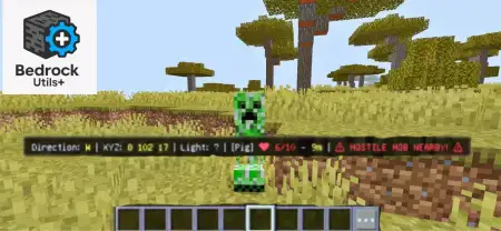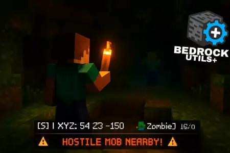 BedrockUtils+ Mod — one slim action-bar line that tells you what matters so you stop pausing, stop guessing, and stop getting blindsided. In Minecraft Bedrock, the readout sits where your eyes already live, giving you instant coordinate clarity and a heads-up when danger’s close, without covering half the screen or turning your HUD into a dashboard. It’s lightweight, responsive, and built for long sessions where you want pure signal and zero clutter.