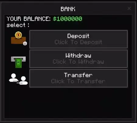 The spicy bit is the interest. If your bank balance tops $1,000,000, you qualify for a 1%–2.5% payout every 12 hours, even if you’re offline. That turns big projects into real goals: pool clan funds, cross the threshold, and let the bonus nudge you toward beacon stacks, rail lines, or a public farm district. Admins can lean into this for server pacing—treat interest as a late-game reward that keeps veterans invested while new players use the same UI to get started and send rent or guild dues.