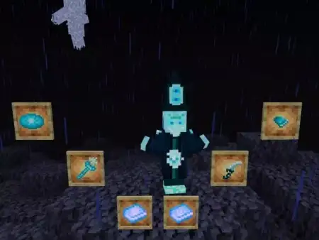 The endgame hook is the Malice Lurer. Craft it, then hunt for a rare ghost-brick altar hiding a Haunted Core. Use the lurer and she arrives: the EVIL SOUL WITCH, a 420-HP menace with damage immunities, teleports, spirit summons, clones, and mixed projectiles that punish greedy players. Beat her and assemble the boss track from dropped fragments into a playable disc, pocket fresh Ectoplasm, and snag one of four weapons: Spirit Sceptre to call friendly ghosts, Soul Slasher that withers and deals extra to ghosts and witches, or a Soul Tome tuned for sonic bursts or brutal fireballs. She always hands over either a Wicked Hat or Wicked Robe too—armor with handy buffs and immunity perks like poison, so you can cosplay the victor and keep raiding. It’s a behavior pack, so don’t count on achievements; if your save matters, test in a copy world first. If October nights feel too quiet, SOUL WITCH: Spooky New Boss & Ghosts mod makes Bedrock properly haunted.