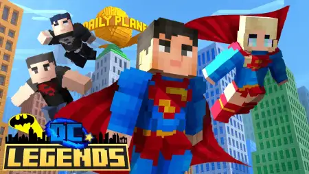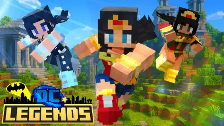 DC LEGENDS Mod — treats your save like a crossover event and lets you build fights, wars, and full worlds around DC-style characters without leaving Bedrock. The core loop stays survival, but the sandbox widens fast: new entities arrive with personalities rooted in the comics vibe, fresh structures spawn as set-pieces to raid or defend, and headline bosses anchor big sessions where your squad actually has to prep, gear up, and execute. The combat gets a lift, too—new mechanics layer on top of the usual swing-and-block flow so encounters feel sharper and a little more tactical when you commit to a push.