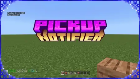 Pickup Notifier Mod — a simple, clean HUD pickup feed for Minecraft Bedrock that shows what you just grabbed, how much, and warns you when your inventory is full so you don’t leave loot behind.