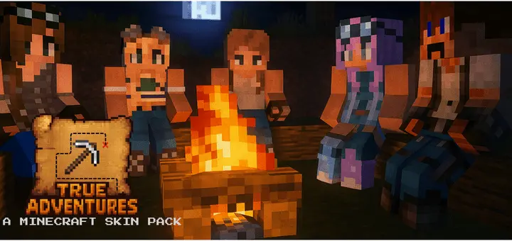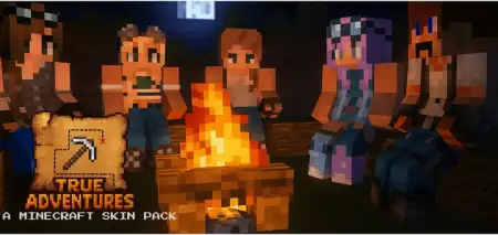 True Adventures — a 15-skin explorer set for Minecraft Bedrock that swaps your fit to match the journey, from forest treks to mountain climbs, caves, oceans, and long survival routes.