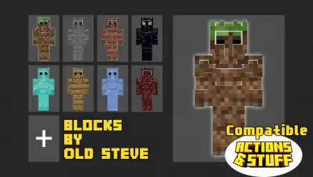 OS Blocks — a Minecraft Bedrock skin pack that lets you suit up as eight block-spirited characters (Grass, Stone, Bricks, Obsidian, Diamond, Wood Planks, Ice, Netherrack) and bring your world’s materials to life.